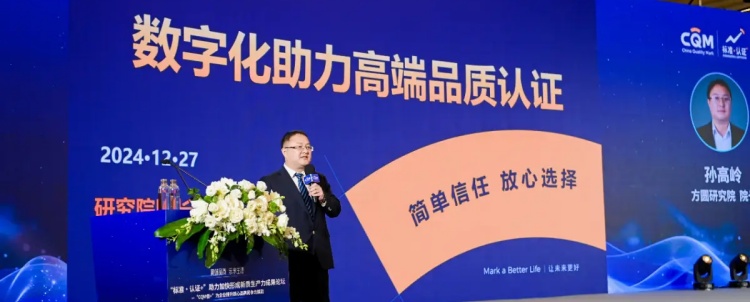 11 月 26日-27日,第二届“标准·认证+”论坛,方圆研究院院长孙高岭分享数字化助力高端品质认证内容