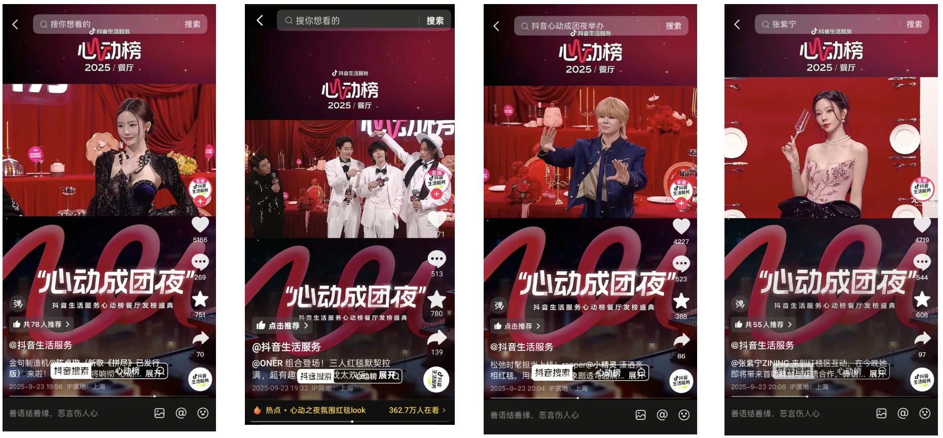 作为抖音生活服务核心榜单,心动榜餐厅此次通过一场「心动成团夜」,不仅创新了「好内容」的呈现形式,更为行业带来了一次具有示范意义的发榜营销实践: