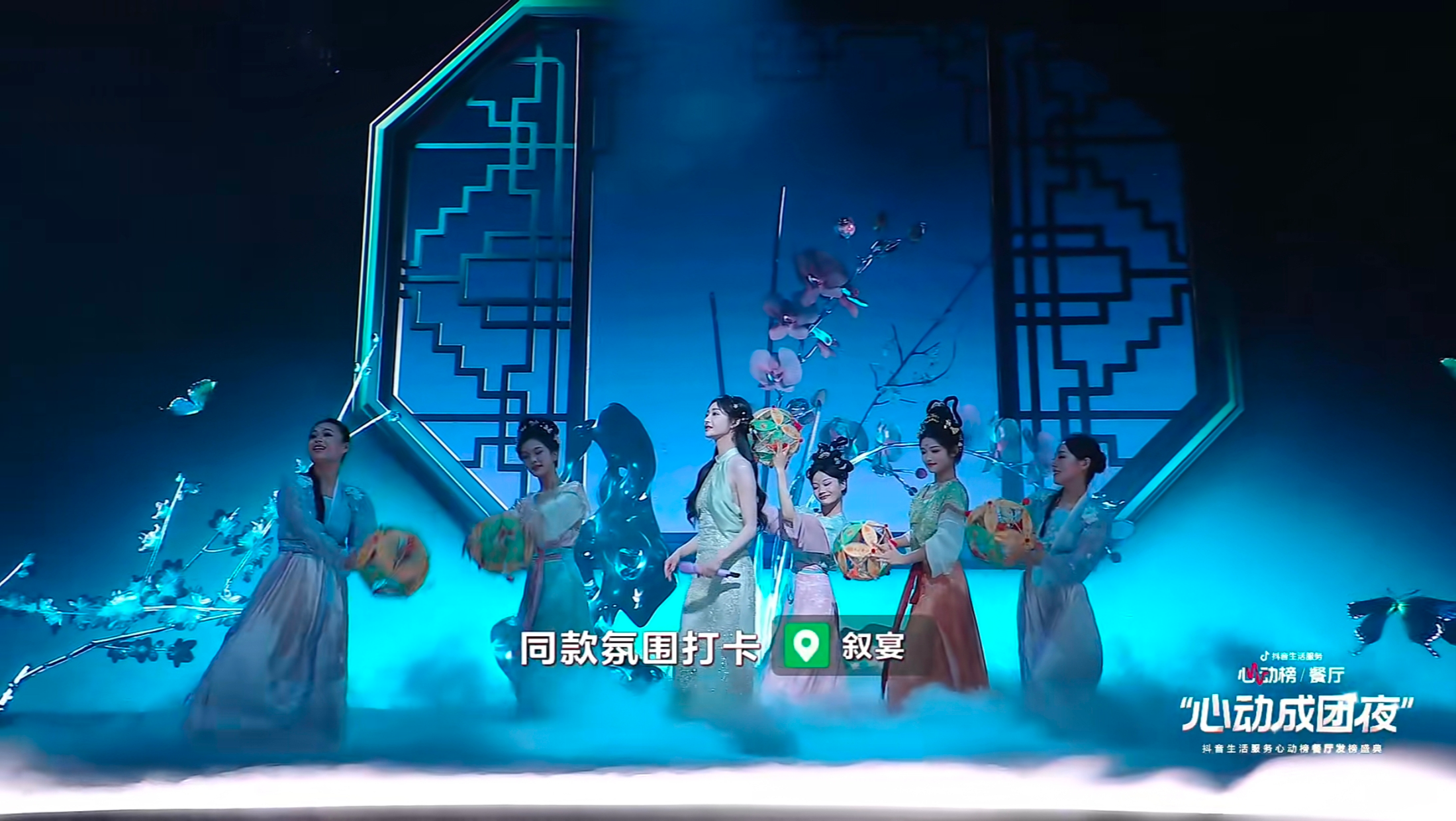 演出环节,抖音生活服务心动榜餐厅突破传统晚会以明星为中心的叙事逻辑,选择将舞台「C 位」留给上榜餐厅,并围绕「独特用餐体验」「风格化用餐环境」「仪式感菜品」三大核心,联合商家、明星共创兼具创意与叙事的趋势舞台,将餐厅氛围感深度融入演出细节,实现从视觉吸引到商家心智种草的高效转化。