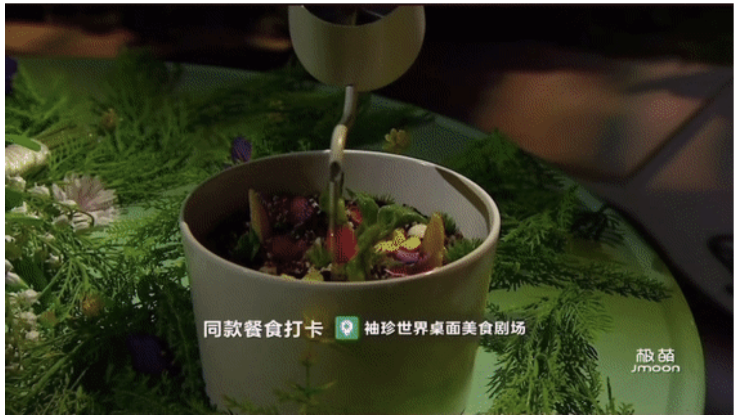 而在陈卓璇「山野自然」舞台之中,袖珍世界桌面美食剧场的「春意蔬香三文鱼花园沙拉」则成为了演出核心道具。艺人向内浇水后,菜品中的鲜花缓缓生长开放,将氛围感拉到极致,也让餐厅特色留存在了观众心中。活动当晚,门店点击数同比去年增长 265%。