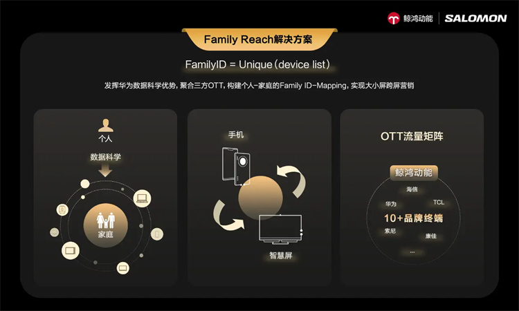 鲸鸿动能品牌解决方案相关负责人表示:“'Family Reach'源于我们对鸿蒙1+8+N全场景设备数据的深度理解与整合,它不仅是简单的广告投放,更是通过数据科学与场景创新,将品牌信息融入家庭生活场,在与SALOMON的首单合作中已初见成效。我们期待,这将成为品牌开启与中国家庭对话的一把钥匙。”