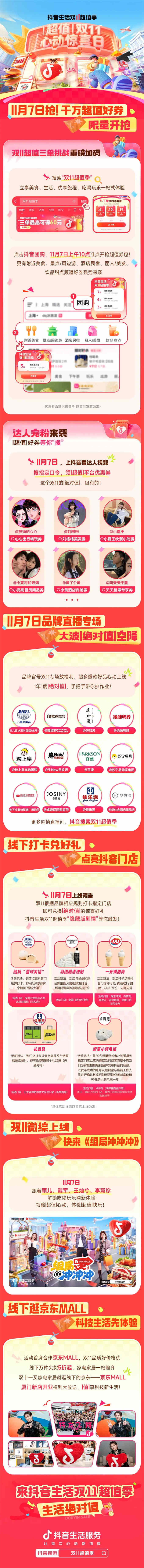 不做功课也能轻松掌握所有玩法?收藏好这份双11完整版心动攻略就够了!从参与超值三单惊喜挑战、搜索达人专属口令领券包,到蹲守大牌直播间抢爆款;从打卡线下门店解锁惊喜好礼,到追更微综《组局冲冲冲》与颖儿,戴军、李慧珍、王灿兮一起嗨玩双11——超值玩法一图打包,带你全程不迷路、福利不掉队!话不多说,攻略奉上,一起玩转这个超值季吧!