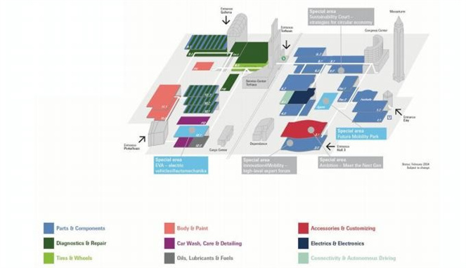 修理厂设备及工具, 车身修补, 喷漆工艺与防腐保护, 车队、旅居车、轻型车及重型车的维修及保养, 拖吊服务, 事故救援, 移动维修站, 废物处理及循环利用, 汽修厂或销售中心设备,润滑油与润滑剂, 相关行业机构及出版商;
