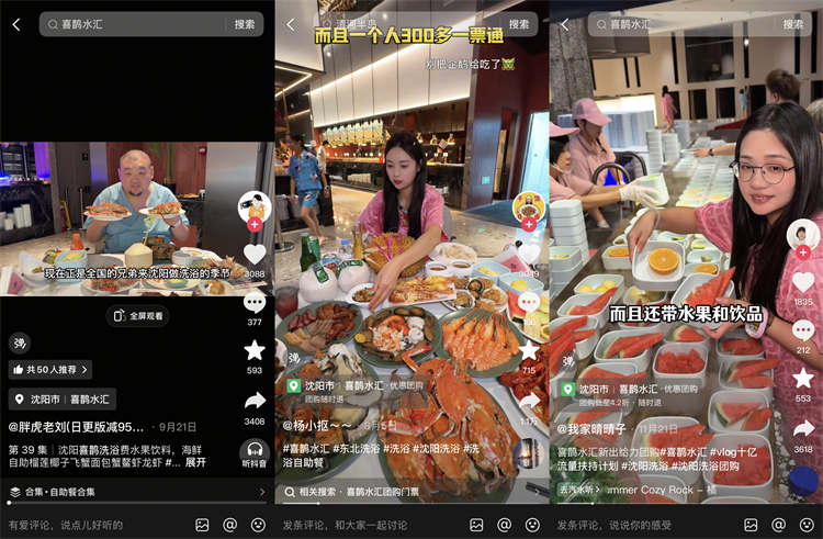 同时,品牌形成了“总部策划+达人创作+门店职员发布”的立体内容矩阵。总部负责定调和对接头部达人,达人更关注“内容力”,聚焦真正能把体验讲清楚的头部达人,通过视频传递门店提供免费的消费项目等信息,比如汤泉、汗蒸、自助餐等,以保证内容多样性与本地渗透力。门店员工则会以个人账号做更生活化传播,实现从全国性声量到本地化渗透的覆盖。