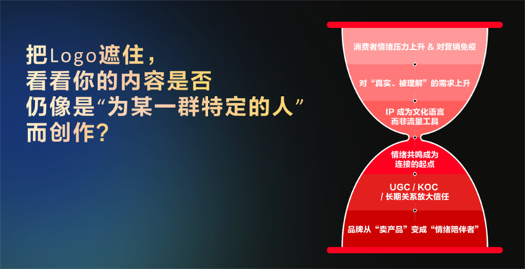 以上就是我想分享的三大趋势:情绪共鸣、AI全链路、沉浸体验。它们表面看各自独立,其实指向一个共同变化:营销正在从“以品牌为中心”转向“以用户为中心”,从我们想让用户记住什么,变成我们要让用户感受到什么。情绪共鸣是让用户感受到“你真的懂我”,AI赋能是为了在恰当的时刻“给用户想要的”,全场景体验是确保“无论何时何地我们都陪在用户身边”。可以说,营销的本质正回归为“经营人与品牌的关系”,而不只是卖产品、做曝光。