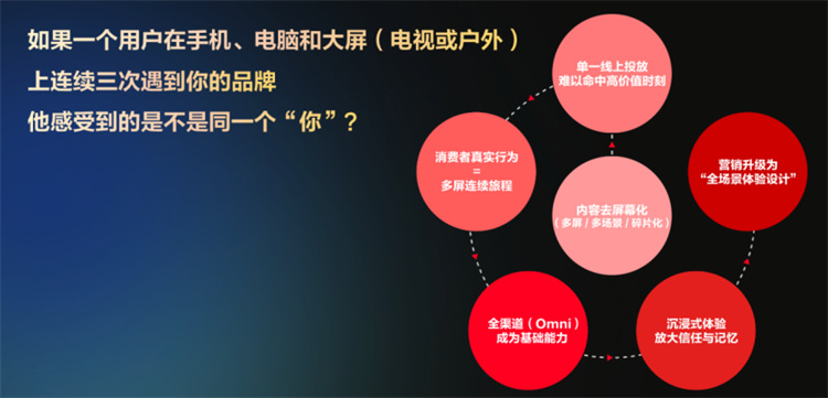 第一是“跨场触达”,保证用户在不同旅程阶段、不同应用场景下,都能被品牌适时地触达到(甚至包括最后临门一脚的转化);