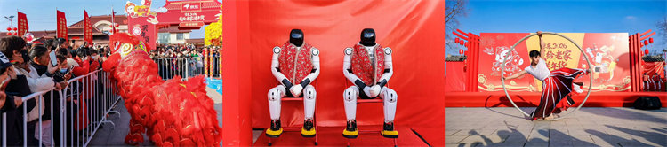 开场舞狮瞬间点燃现场,彩狮腾跃互动、摆就“新春大吉”吉祥造型,红绸映红灯,将喜庆氛围拉满;乡土特色浓郁的《丰收渔鼓》,用质朴歌声唱出乡村丰收喜悦,满是烟火温情。杂技表演的高难度动作接连上演,精湛技艺引得乡亲连声喝彩;机器人太极拳表演成为全场惊喜,传统武术招式被机器人精准演绎,科技感与传统美巧妙融合,让孩童欢呼雀跃、长辈拍手叫好,新潮趣味十足。