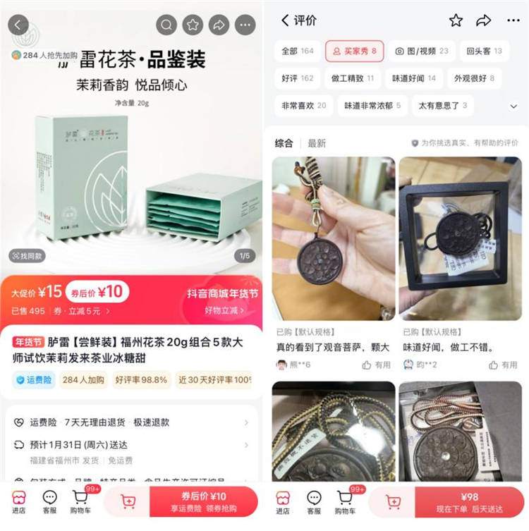 在商品展示与信任构建上,商家则通过完善商品产地、种类、食品许可证等详细属性,让用户清晰了解产品信息,同时在商品主图中展示花茶金奖证书,强化产品品质与非遗背书,快速打消消费者决策顾虑,有效提升商品动销转化率。