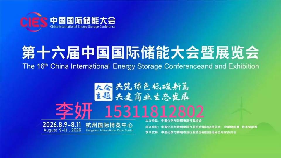 2026CIES第十六届储能大会暨展览会将于2026年8月09-11日在杭州国际博览中心召开。本次大会将重点以市场应用为导向,服务和推动产业链和供应链企业对接市场渠道资源。