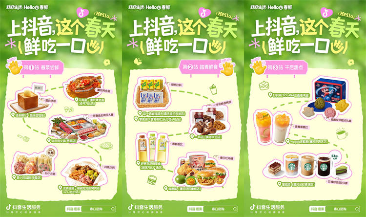 基于春季出游、假期聚会、日常休闲等春日餐饮消费需求,抖音生活服务提炼出正餐尝鲜、出行补给、午后小食三大春日美食消费场景,精准覆盖用户从聚餐宴请、踏青外带,到午后小憩的全链路需求,让春日鲜味真正落地到可感知、可消费、可传播的生活场景中。