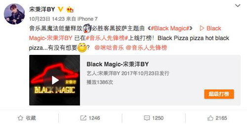 10月23日,抖音上线了一个非常潮酷的主题为“DOU出黑,才够WOW”的挑战赛。其中挑战赛BGM《Black Magic》由知名音乐人宋秉洋为必胜客WOW烤肉黑比萨度身打造,不仅一举冲入亚洲新歌榜排名Top50,还迅速引起90后的转发评论,裹挟着必胜客新品黑比萨一跃成为最新娱乐潮流。
