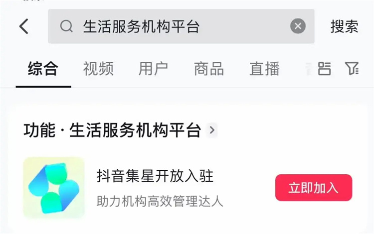 方式一:抖音App搜索“生活服务机构平台”,完成入驻