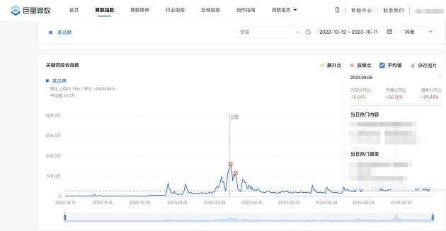 在竞争激烈的商业环境中,对标品牌调研至关重要。现在,借助巨量算数指数,品牌可以更便捷地将不同品牌的声量变化趋势进行对比及分析。通过关键词指数分析,可以看到在抖音或者今日头条等平台上,品牌 A 和品牌 B 在某一时间段内的声量差异,帮助品牌洞悉指数波峰之间的变化规律,了解引发热议的营销事件内容,从而及时掌握行业相关品牌在市场中的优劣表现,把握市场动向,扬长避短,制定更有竞争力的策略。